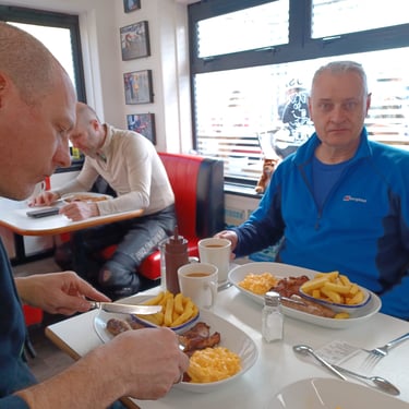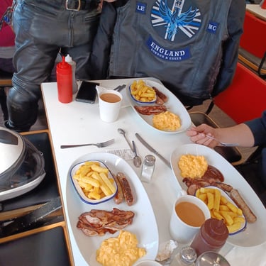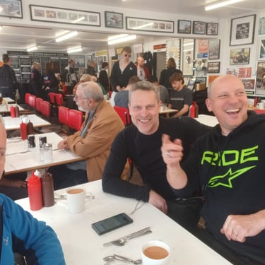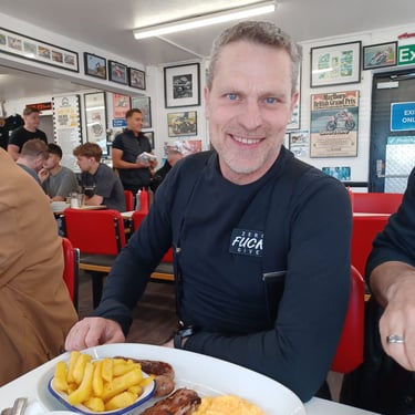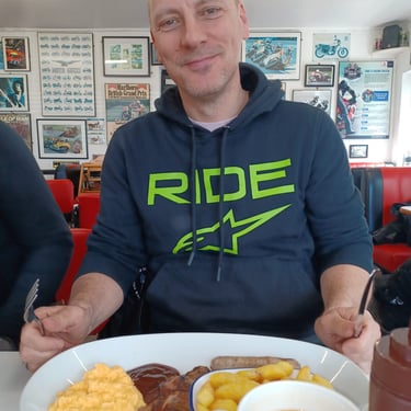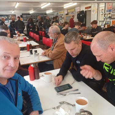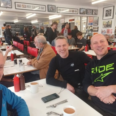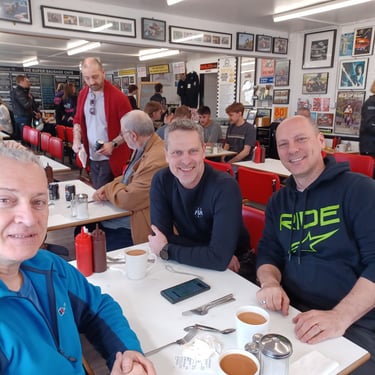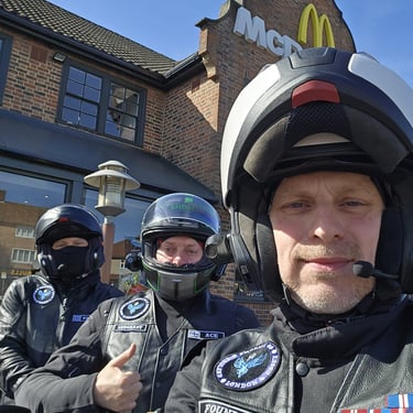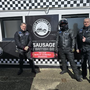 Brilliant ride out today to Super Sausage Café in Potterspury. Only three of us out today—myself, Martin Ace, and Dean Meekcoms—but the weather was spot on for the two-hour trek. Even though it’s a fair distance, it was absolutely worth the effort; the place was packed with bikes when we arrived, a proper biker’s destination. 🏍️💨 It would have been great to have more of the pack with us, but I appreciate it was very short notice! 🐦🔥 The Kurviger App provided a great route with some incredible scenery, though we’ll likely cap the "heavy gear change" sections to 90 minutes next time to save our clutch hands from seizing up!
